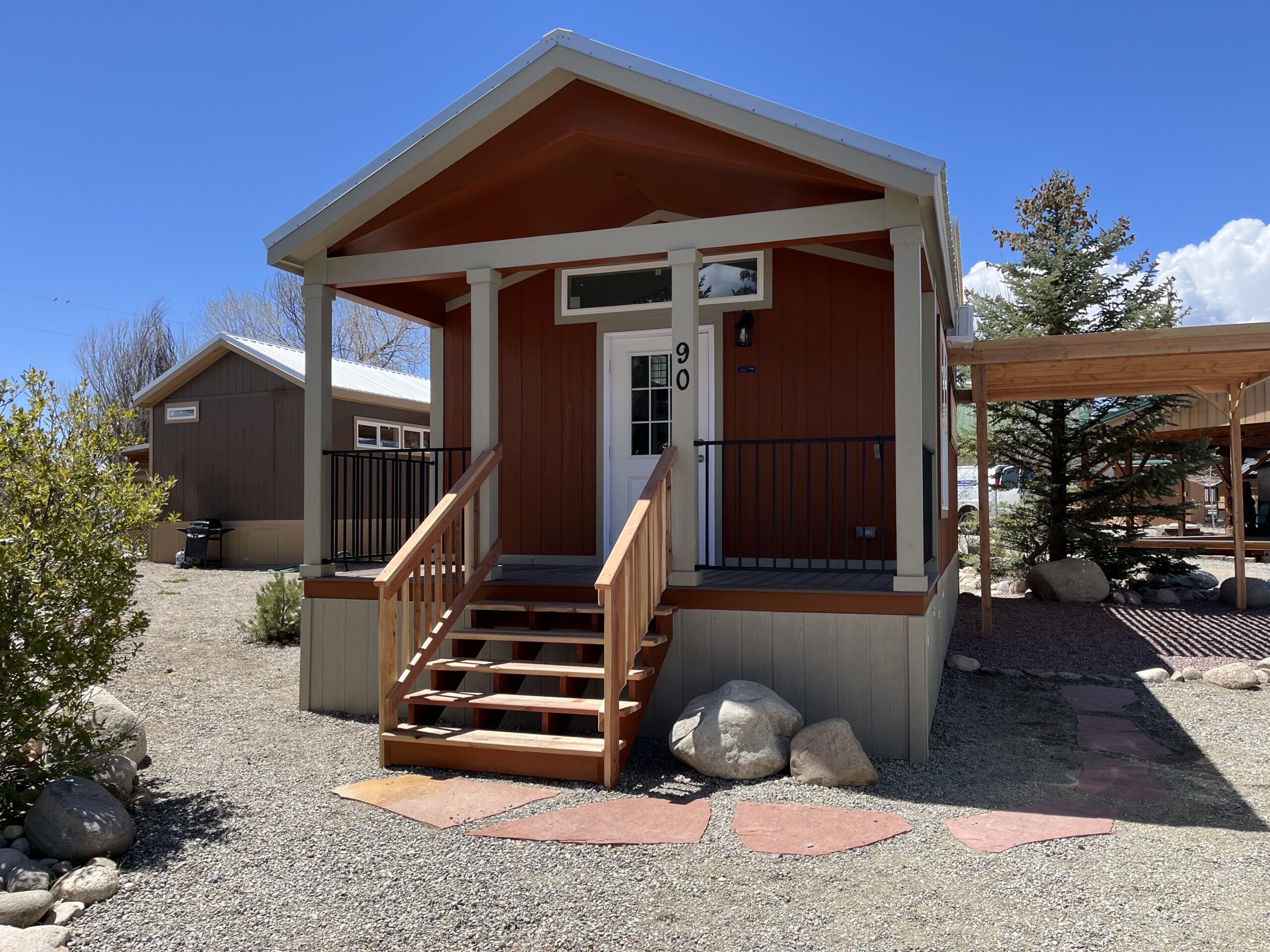 DEEDED lot and NEW Park Model Home with outdoor living space with many amenities hooked up to enjoy year-round! Soak in the awesome views with a beautifully landscaped/rockscaped lot and patio with shade arbor and flagstone stepping stones leading to the covered front porch.