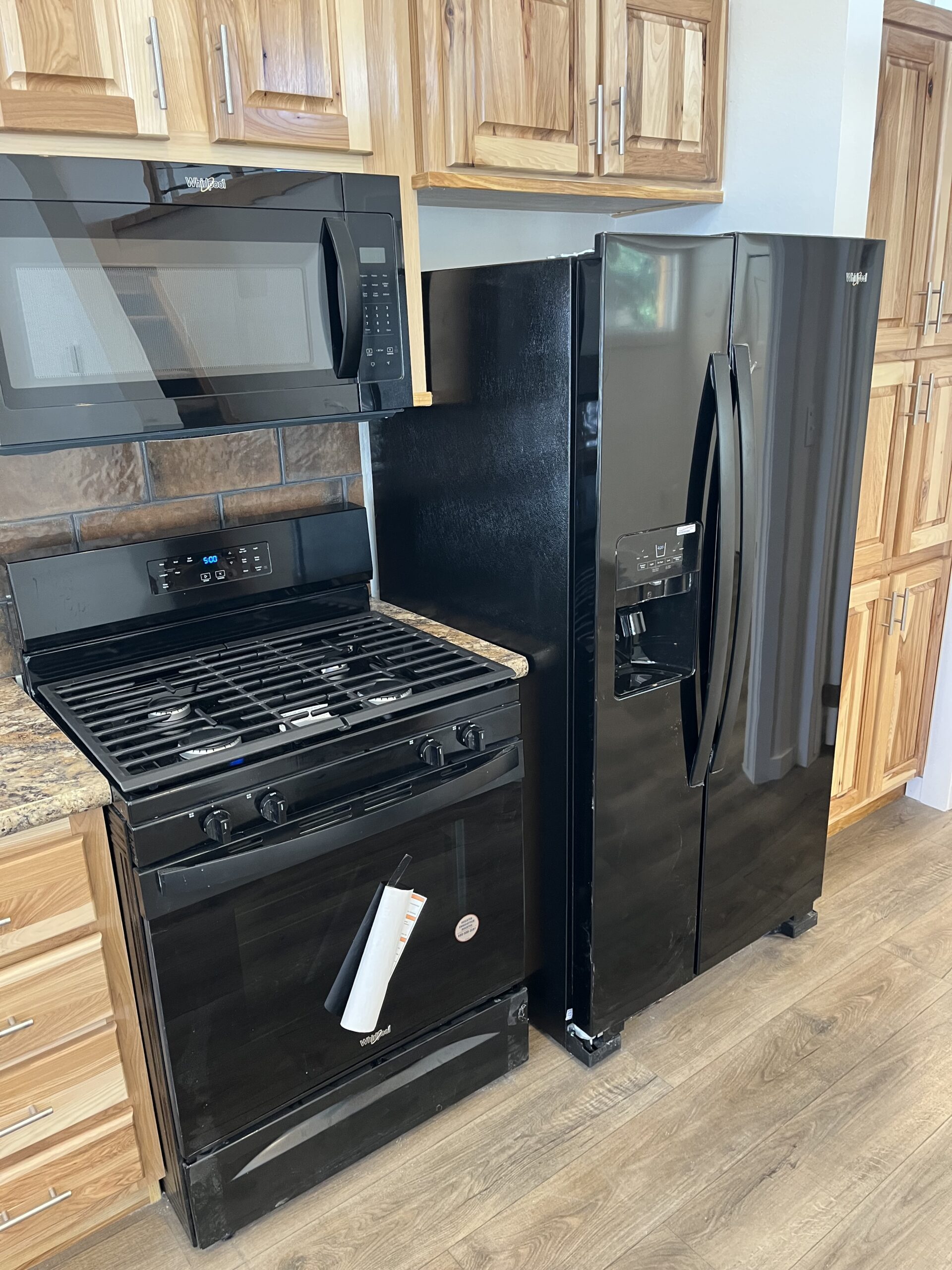 • Hickory cabinets for a rich, rustic look.