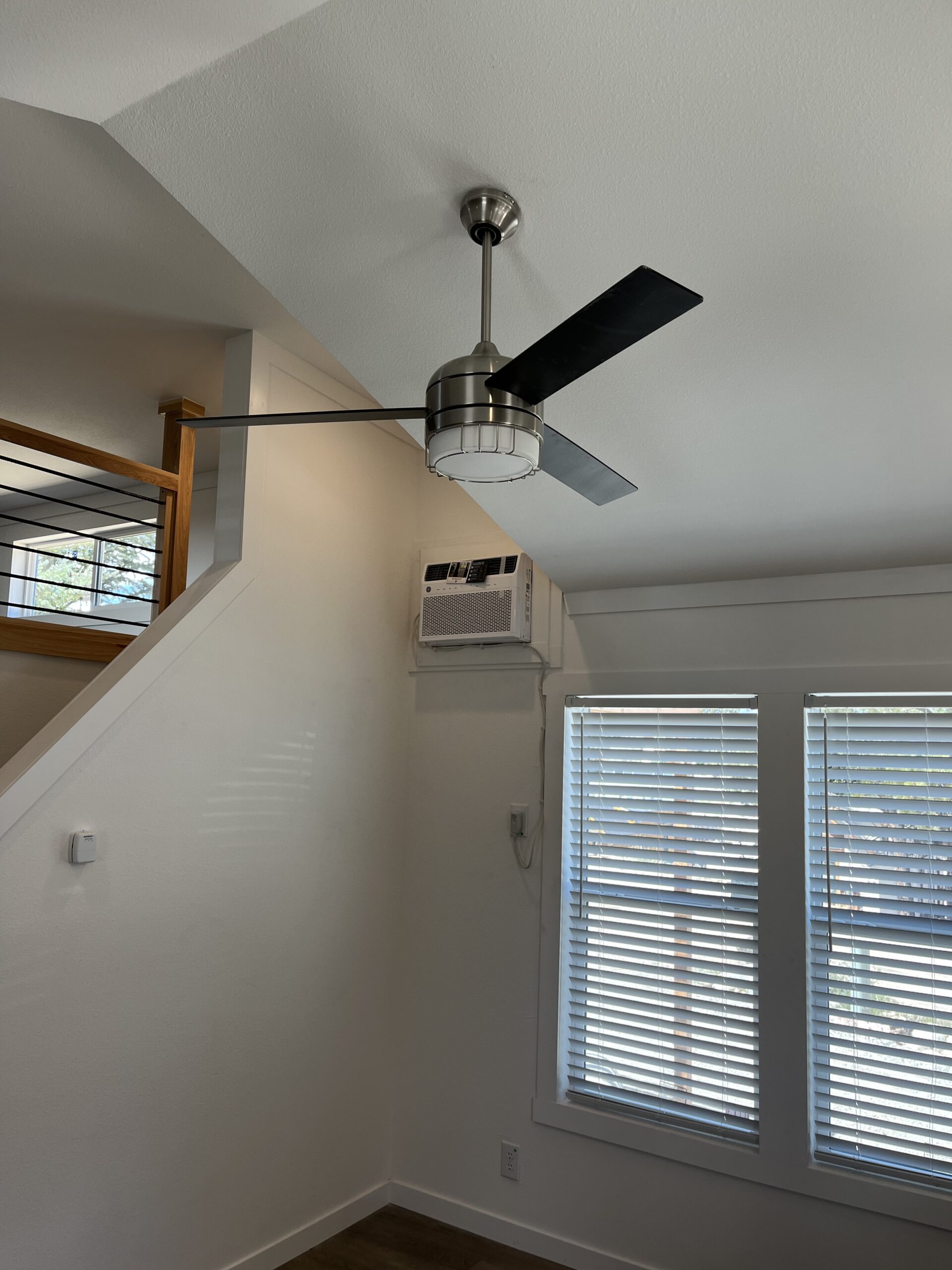 • Recessed LED lights and ceiling fan.